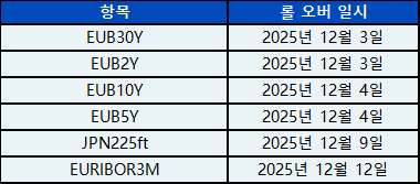 선물 계약의 롤오버 일정은 다음과 같습니다: